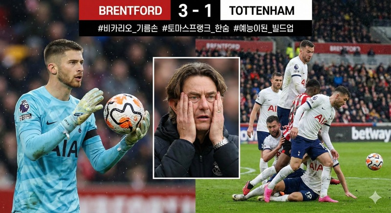 비카리오의 퍼포먼스는 골키퍼가 해서는 안 될 ‘모든 행동의 교과서’ 였습니다. 토트넘의 빌드업은 마치 지진 난 젠가 탑처럼 불안정했고, 그 중심엔 비카리오가 있었습니다. 허드슨-오도이에게 헌납한 첫 골은 비극이었고, 크로스를 만세 부르며 흘려보낸 두 번째 골은 코미디였습니다. 토마스 프랭크 감독이 추구하는 후방 빌드업이 비카리오라는 '시한폭탄'을 만나 어떻게 자멸하는지 보여준 90분이었습니다. 팬들은 이제 그의 손에 본드를 발라야 할지 고민해야 할 시점입니다.