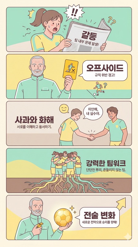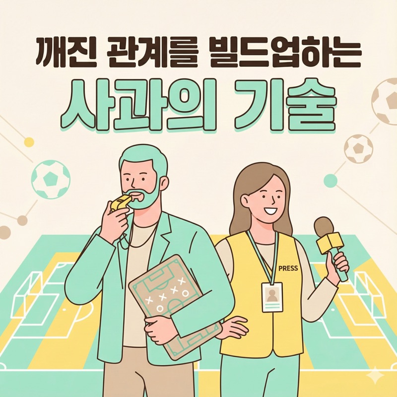 여러분의 관계에서도 **'백태클'**이 들어오거나, 본의 아니게 **'오프사이드'**를 범했을 때가 있을 겁니다. 이때 필요한 전술을 지시합니다.